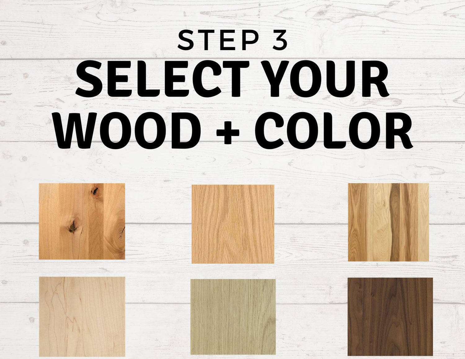 We build with premium hardwoods including Rustic Alder, Red Oak, Hickory, Maple, White Oak, and Walnut.
