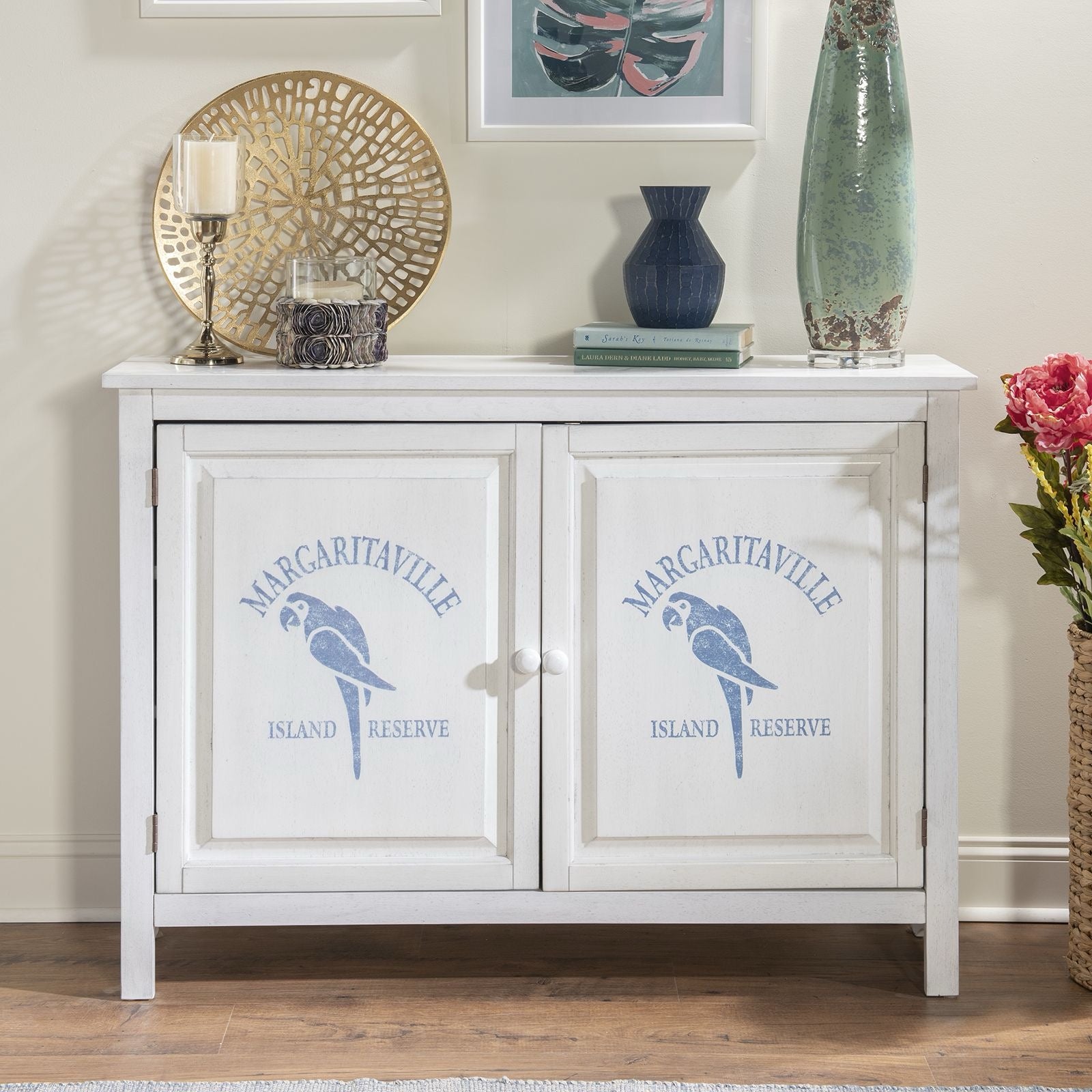 Keep things cool and collected with the Island Reserve Buffet from the Margaritaville Collection. Made from hardwood solids and veneers in a fresh painted white finish, this stylish storage piece features two doors with branded Margaritaville fronts and matching white hardware. Behind the doors, you’ll find roomy storage perfect for stashing dinnerware, bar essentials, or beach-inspired décor—bringing laid-back, coastal charm to your dining space