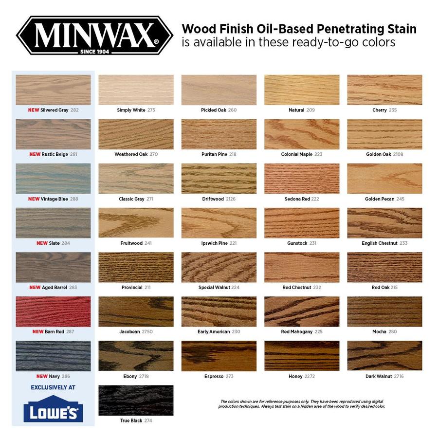 Minwax Wood Finish is a penetrating, oil-based stain that enhances wood grain with rich color in just one coat.