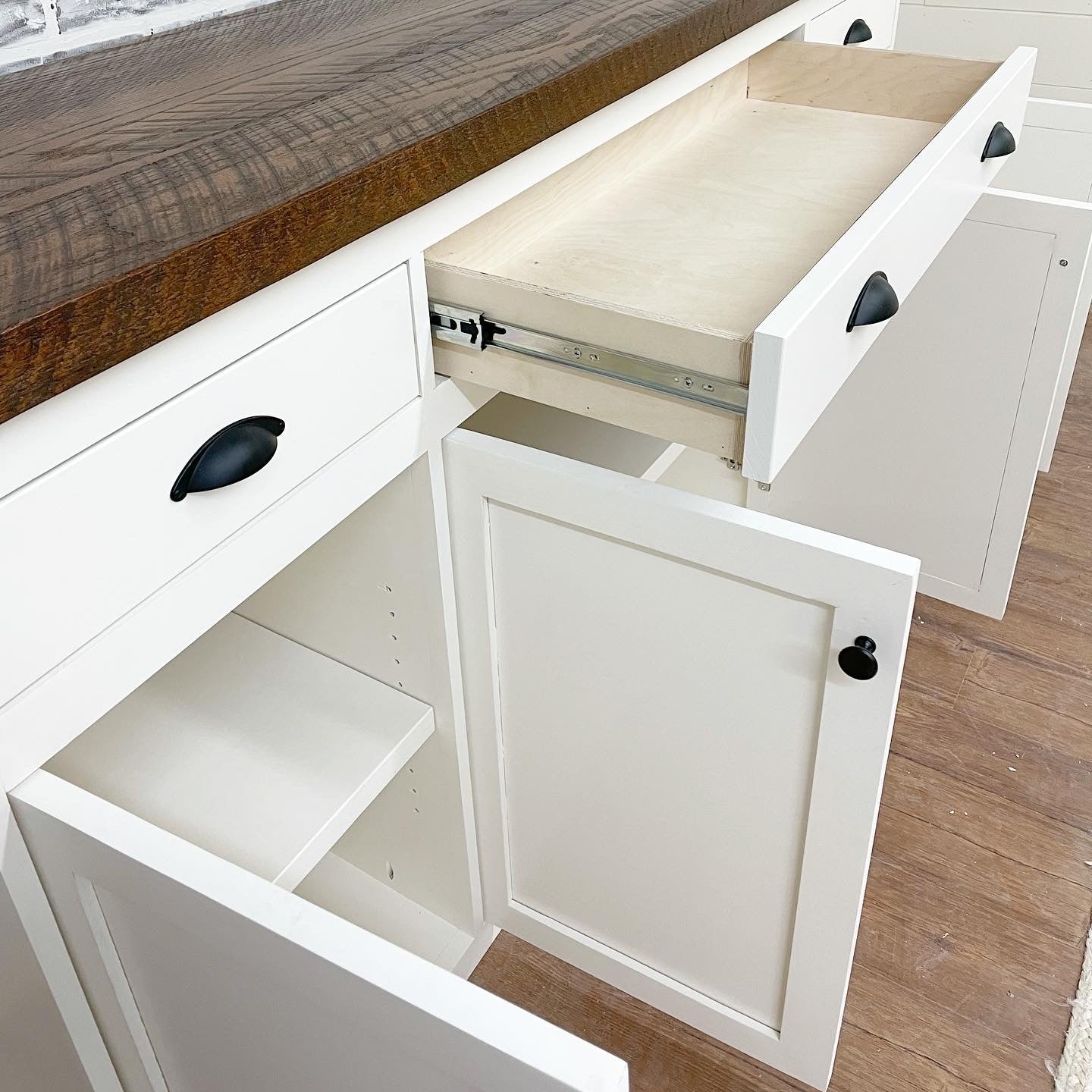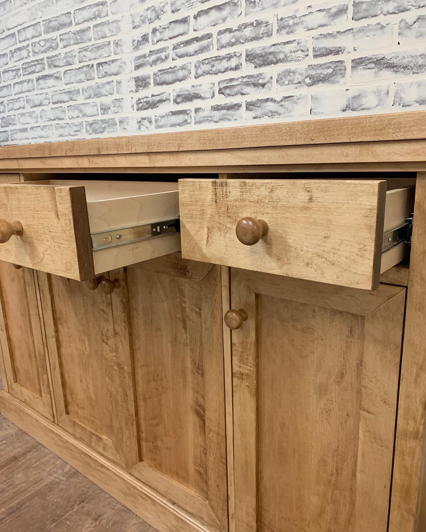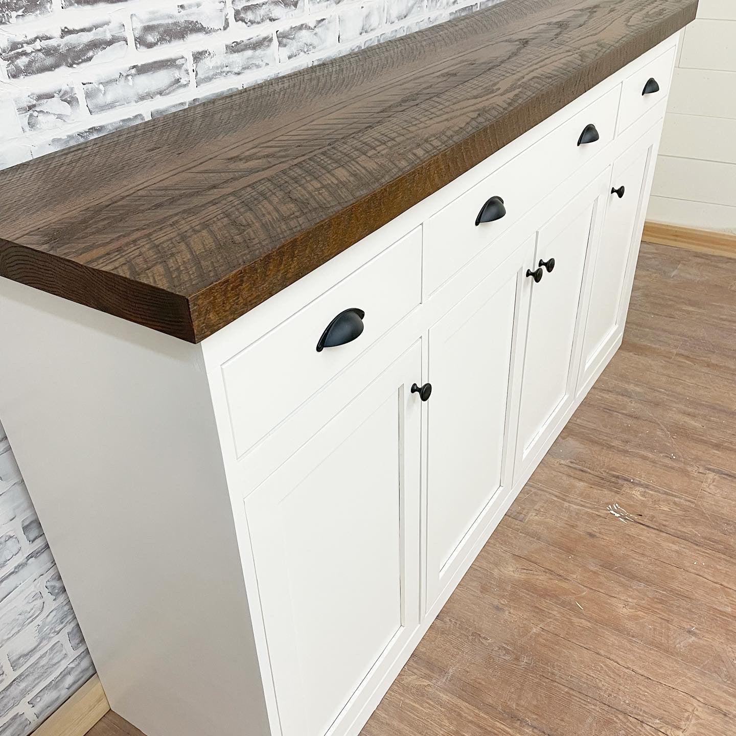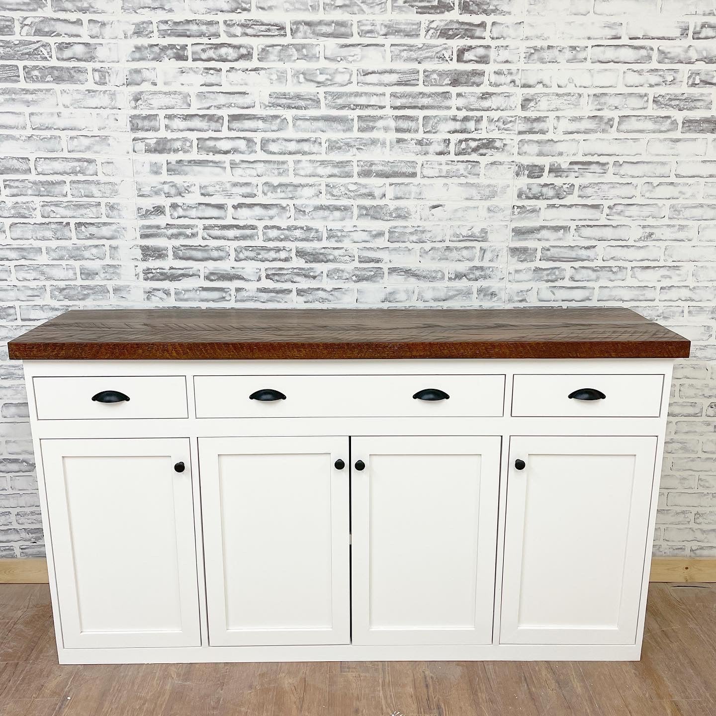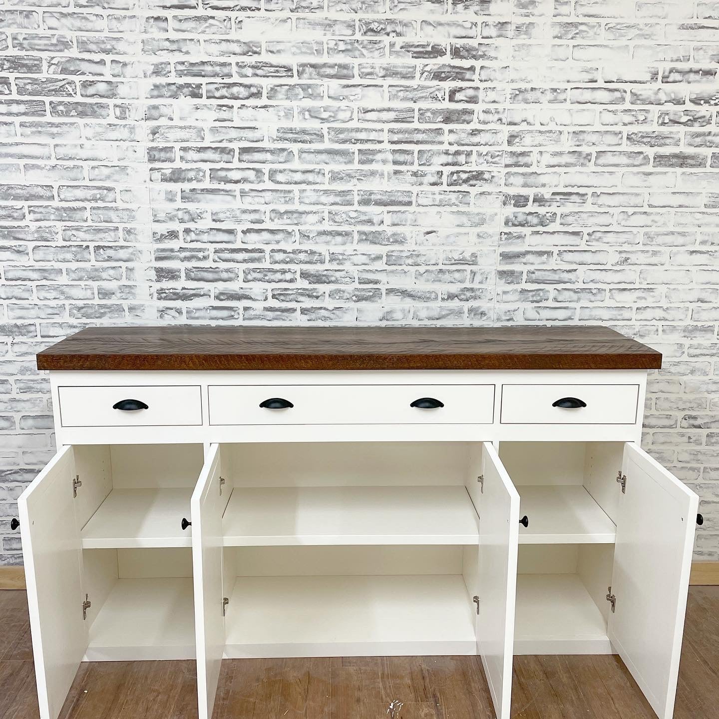 The classic Farmhouse Buffet is a great addition to add to your new dining table and dining area. Maximize your space with drawers for placemats, formal dining silverware, and of course junk. The adjustable shelving it comes with allows you to maximize your storage space for housewares and seasonal decor.