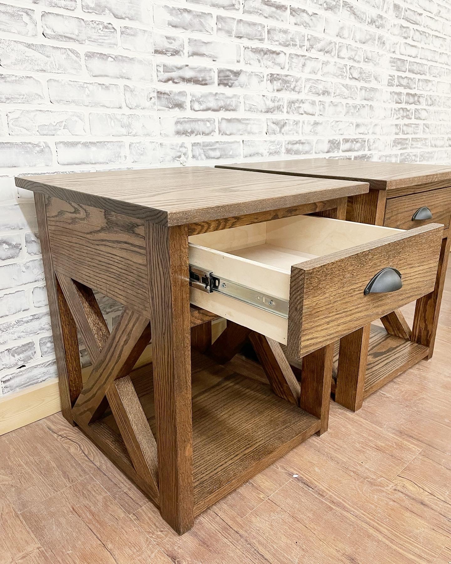 The Modern Farmhouse End Table is a perfect addition to your living room or bedroom as night stands. Customize it to add the x design and a drawer if you need extra storage.